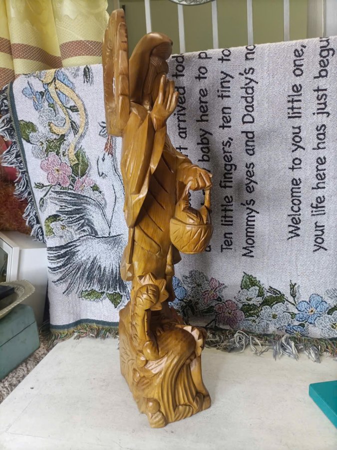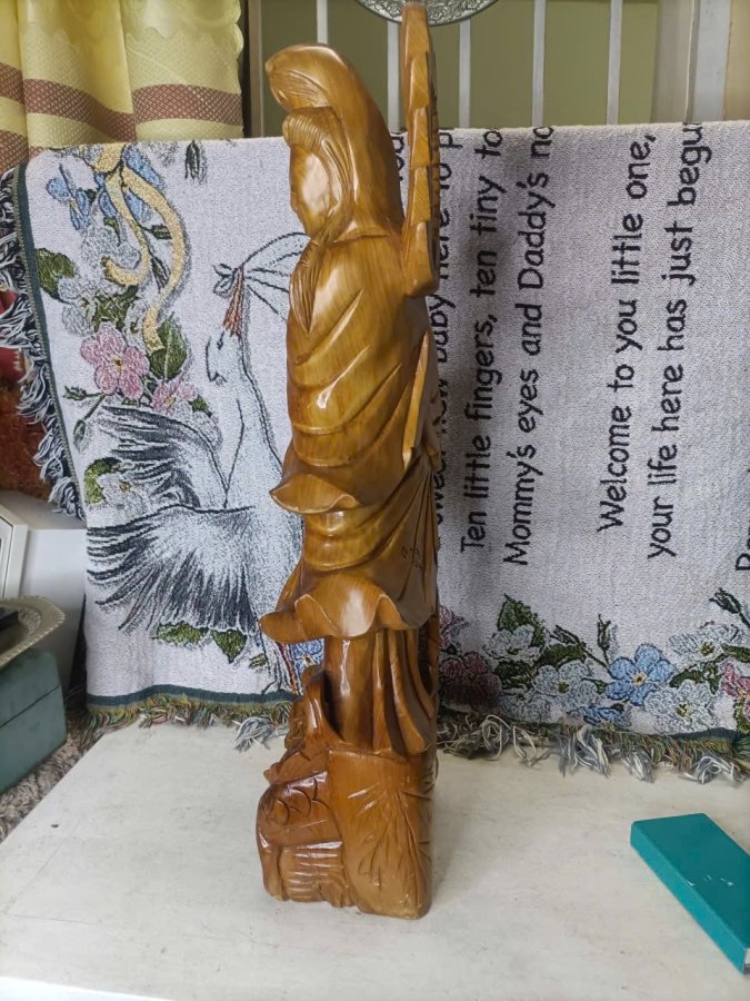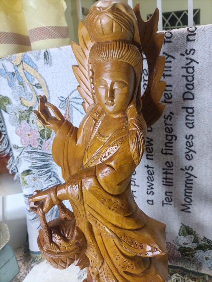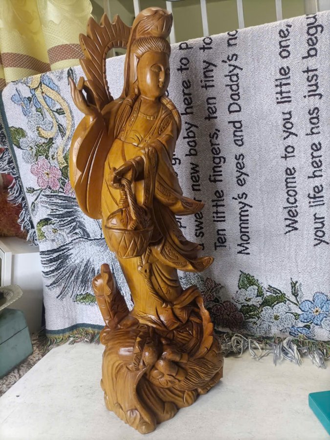 Tượng phật bà gỗ thông đỏ quý hiếm gỗ mùi thơm nhẹ , lành đẹp hoàn hảo kg lỗi 62x18x14