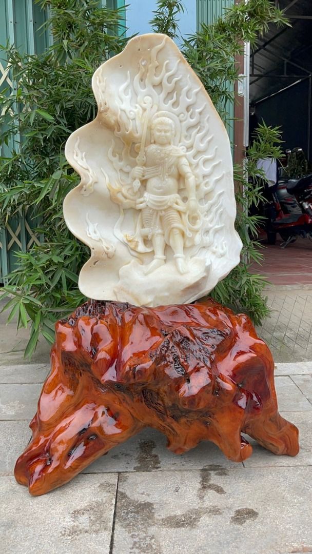 Tượng Phật BẤT ĐỘNG MINH VƯƠNG điêu khắc trên vỏ sò hoá thạch