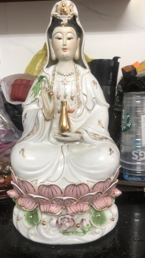 Tượng Phật quan âm xưa dày nặng, lành tít, cao 43: 350k + ship