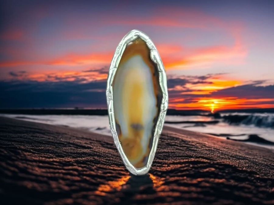💥Chất liệu: Đá mã não tự nhiên tuyển chọn, chế tác thủ công viền kim loại không hút nam châm, nhìn như bạc .