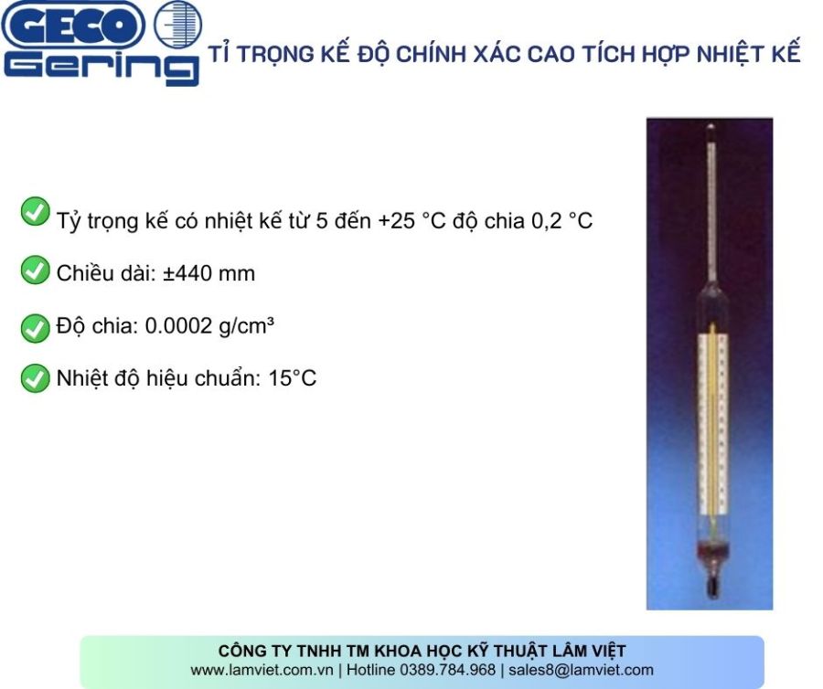 - Độ Bền Cao: Với chất lượng sản phẩm từ Đức, các tỷ trọng kế của Geco Gering có độ bền và tuổi thọ cao, phù hợp cho môi trường làm việc khắc nghiệt.