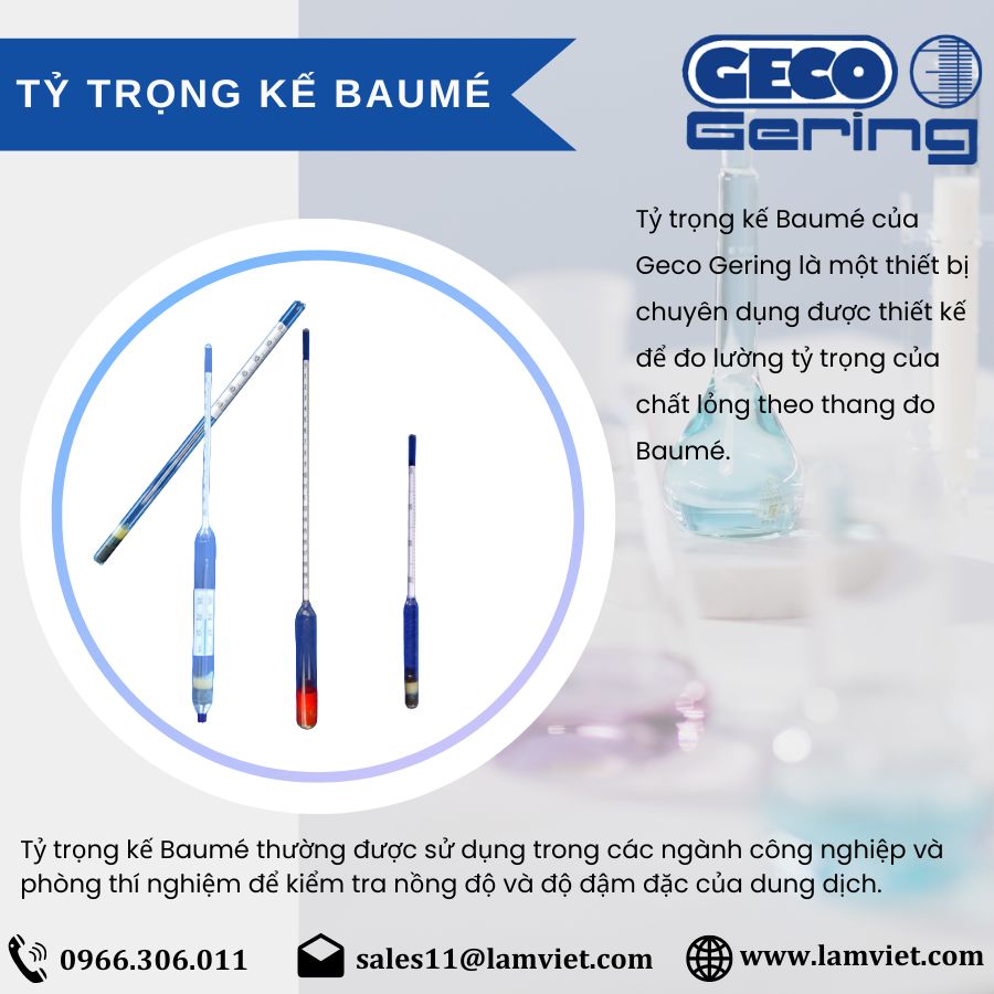Tỷ trọng kế Baumé của Geco Gering là một thiết bị chuyên dụng được thiết kế để đo lường tỷ trọng của chất lỏng theo thang đo Baumé. Đây là công cụ lý tưởng cho các ứng dụng trong công nghiệp và phòng thí nghiệm, đặc biệt trong các lĩnh vực yêu cầu độ chính xác cao như hóa chất, thực phẩm, và dược phẩm.