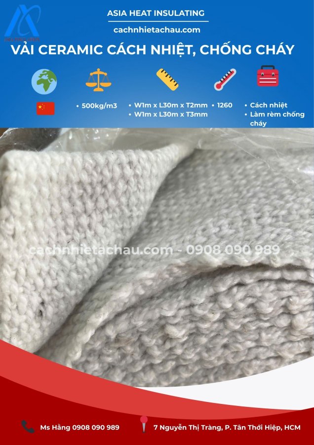 Vải sợi gốm ceramic là một loại vật liệu cách nhiệt cao cấp, được sản xuất từ sợi gốm tinh chế kết hợp với chất kết dính hữu cơ hoặc sợi gia cường như inox, thủy tinh. Sản phẩm này có khả năng chịu nhiệt cực cao, chống cháy, chống ăn mòn và được ứng dụng rộng rãi trong các ngành công nghiệp đòi hỏi khả năng chịu nhiệt khắc nghiệt.