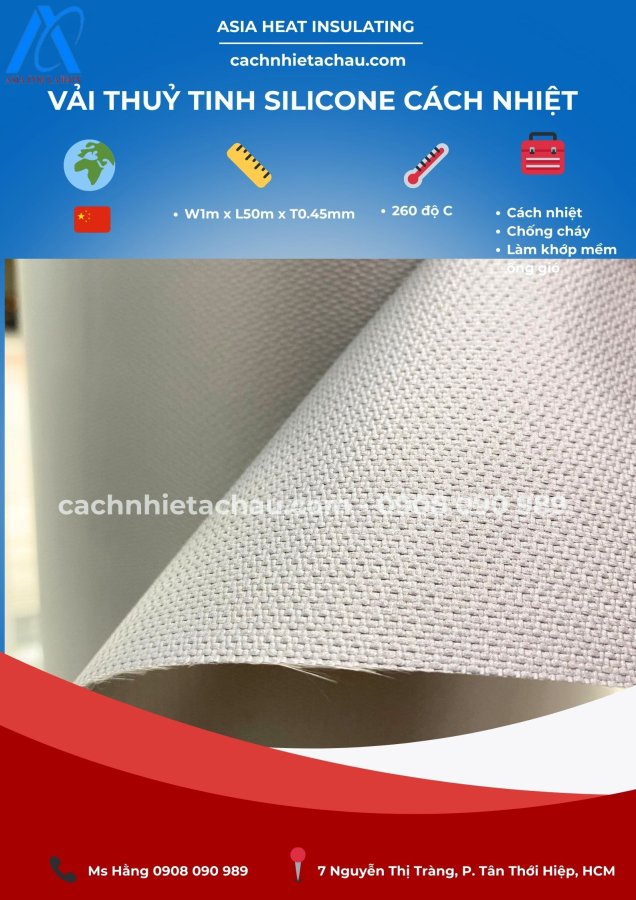 - Vải thủy tinh tráng silicone có đặc điểm chịu nhiệt độ tốt (-70 độ C đến 260 độ C), lõi là vải thủy tinh chịu nhiệt 550 độ C