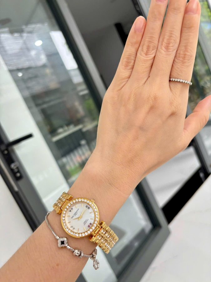 - Đồng hồ chính hãng fullbox- Size nữ 32mm- Mặt xà cừ đính kim cương và đá quý cao cấp- Tay nữ 16 trở lên mang đẹp- Hàng trưng bày, dây dài full còn tem