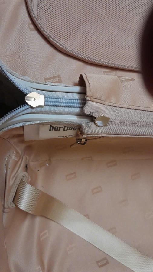 Thiết kế đẳng cấp: Gam màu kem thanh lịch kết hợp cùng các chi tiết mạ vàng sang trọng và logo "h" đặc trưng, giúp bạn luôn nổi bật tại sân bay.