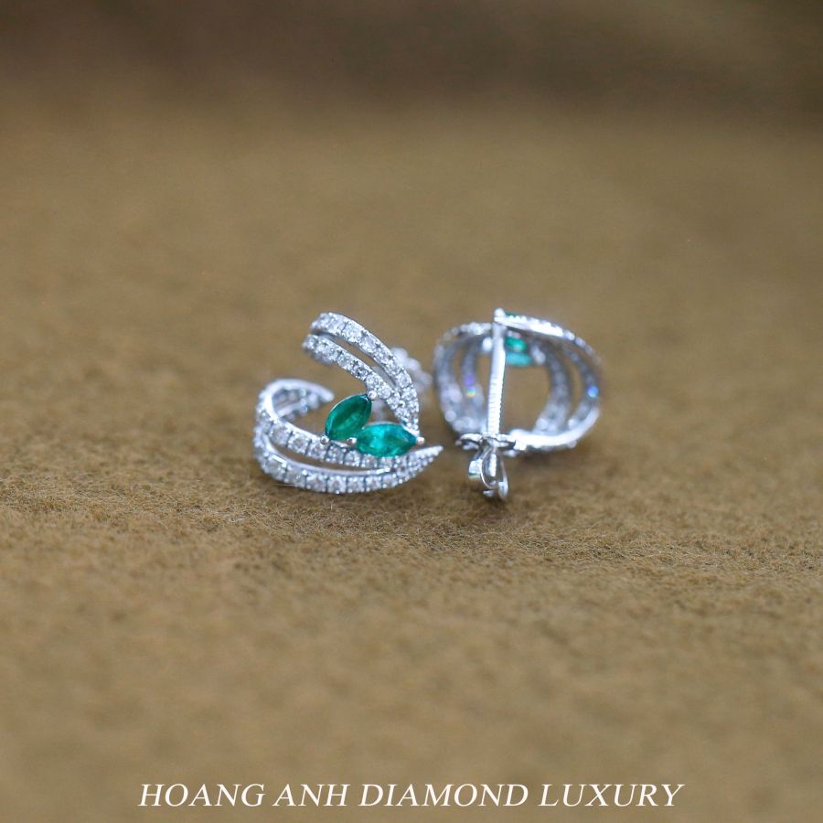 VDG127818 Hoa Tai VT18K Gắn 4 Viên Ngọc Lục Bảo Hạt Thóc