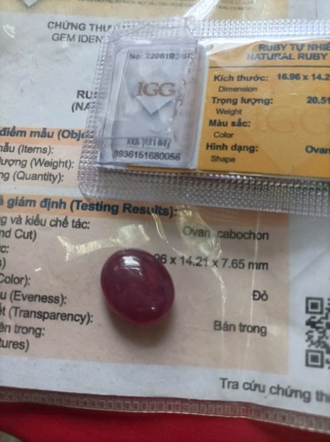 Viên ruby lục yên thiên nhiên có kiểm định bị rách 20,51ct giá 1200k