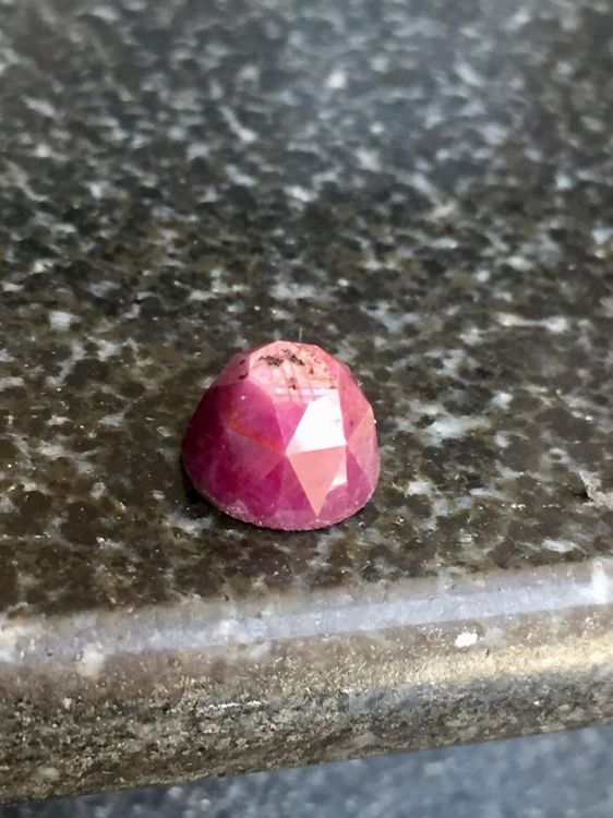 Viên Ruby thiên nhiên 100% được mài giác rose-cut, khối cao. Có ánh titan