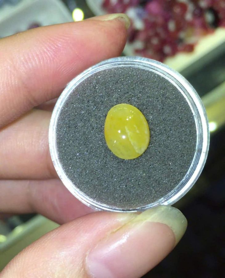 Viên Saphire vàng lục yên thiên nhiên không xử lý hàng hiếm nặng 1,25ct kt 9,3x7,6x2,6mm giá 400k