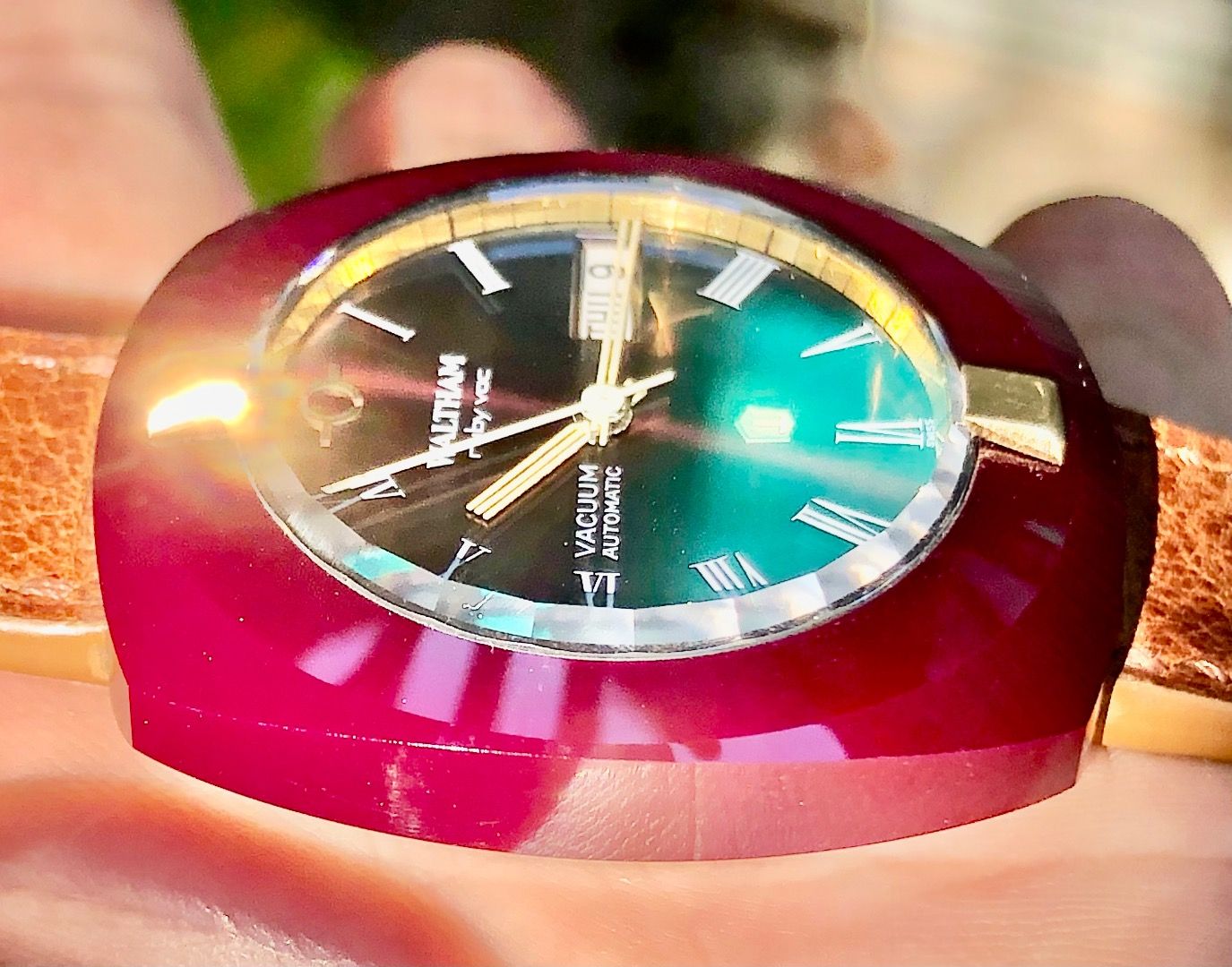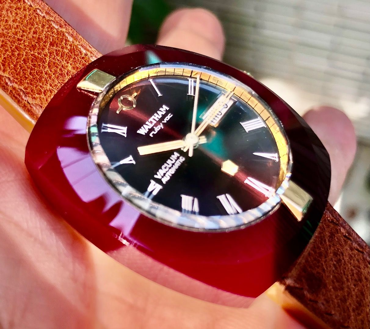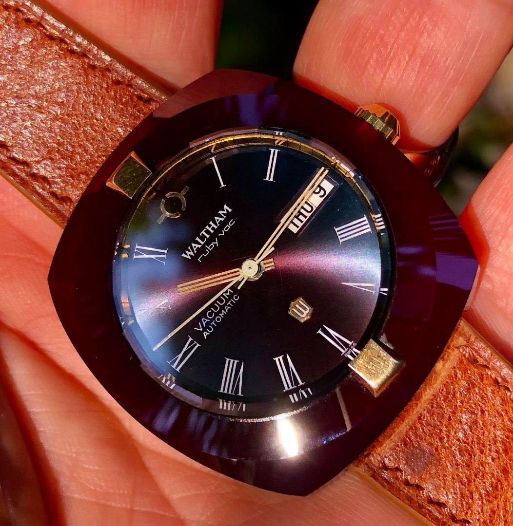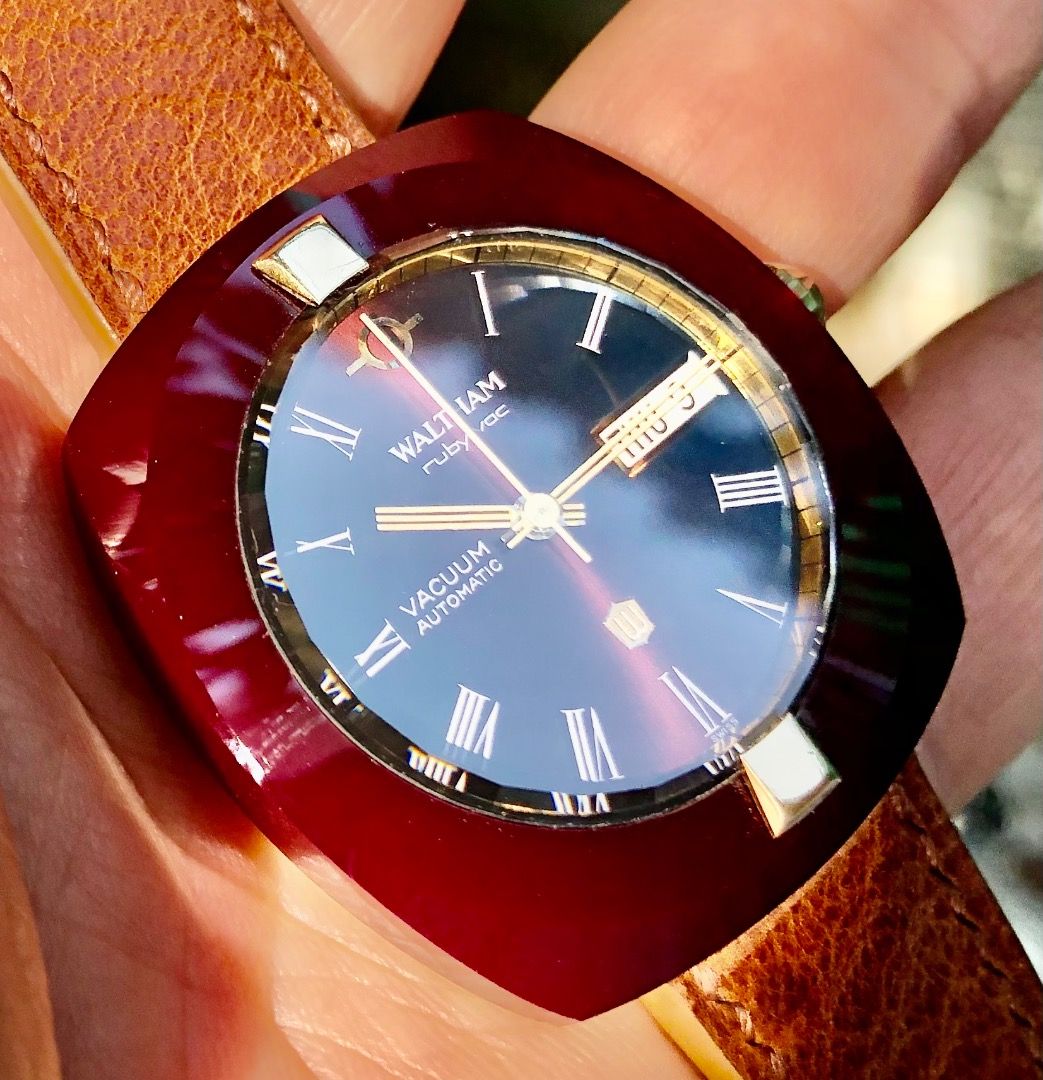 Hàng cực hiếm. Vỏ làm bằng đá Ruby nguyên khối.Đồng hồ cổ sản xuất năm 1968.Máy tự động 38000 dao động.