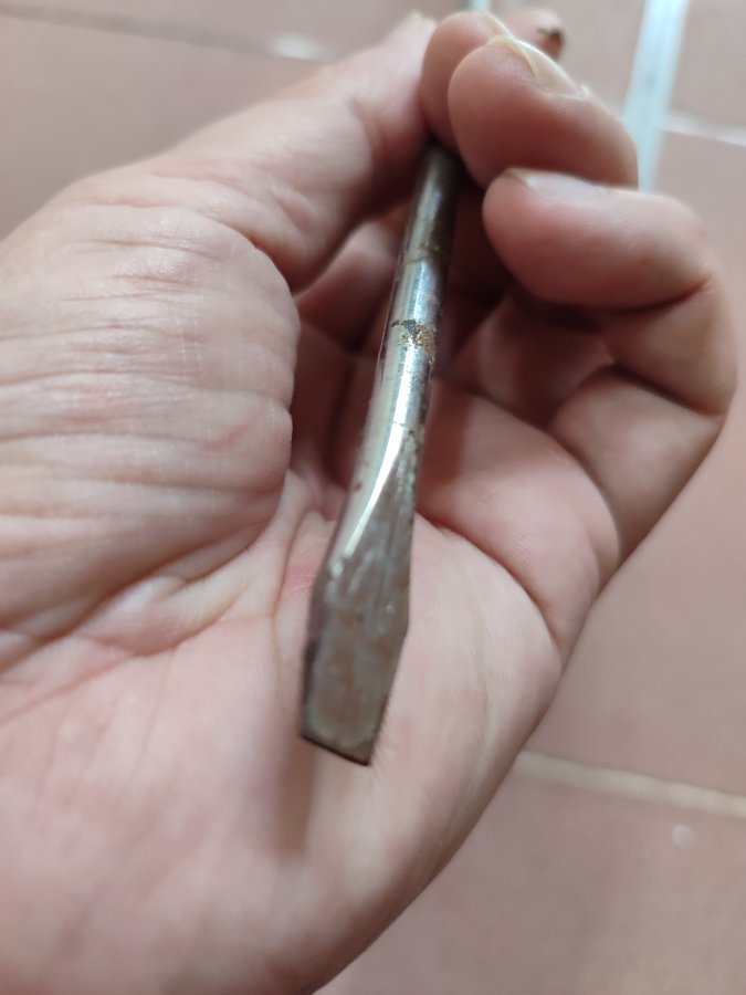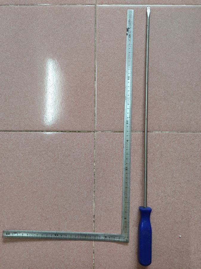 Vít dẹp phần thân dài 45 cm, cán 11 cm, đầu còn đẹp, dùng tốt + 1 thước góc