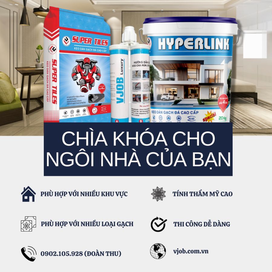Một ngôi nhà bền đẹp không chỉ đến từ thiết kế mà còn phụ thuộc vào chất lượng hoàn thiện. Với keo dán gạch, keo chà ron và dụng cụ ốp lát từ VJob, từng viên gạch đều được cố định chắc chắn, bảo vệ công trình bền vững theo thời gian.