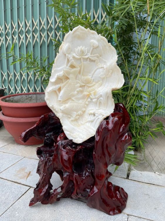 + Nguồn gốc: Tác phẩm được điêu khắc trên vỏ sò hóa thạch ,có niên đại hàng nghìn năm tuổi .