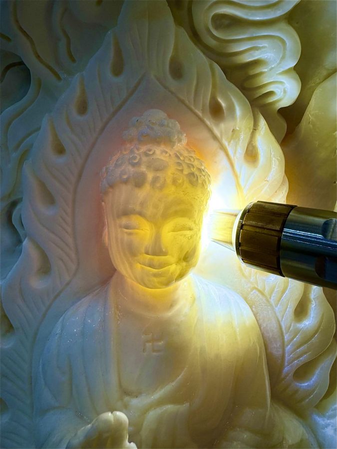 - Chất Ngọc: Mang linh khí Cát tường của biển cả sau hàng vạn năm đã hóa Ngọc, thấu quang khi dọi đèn