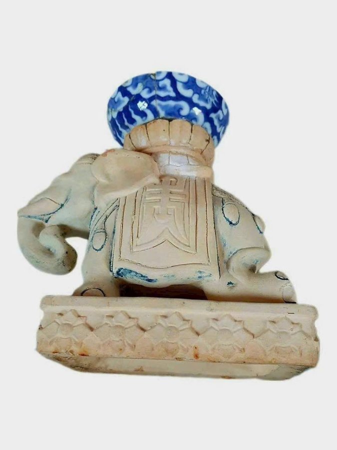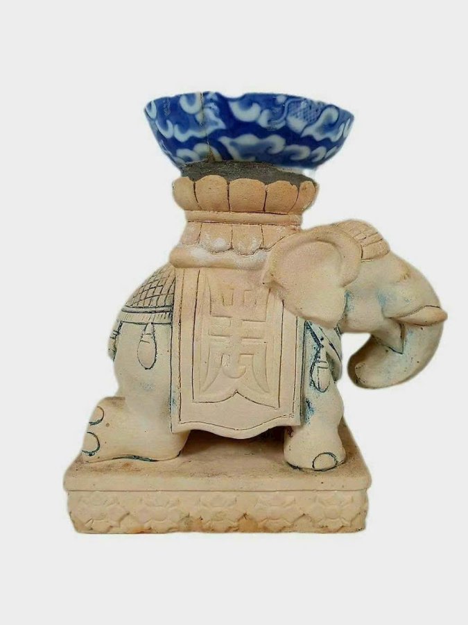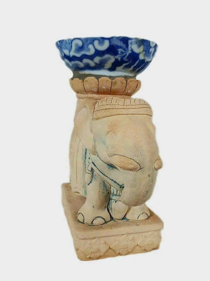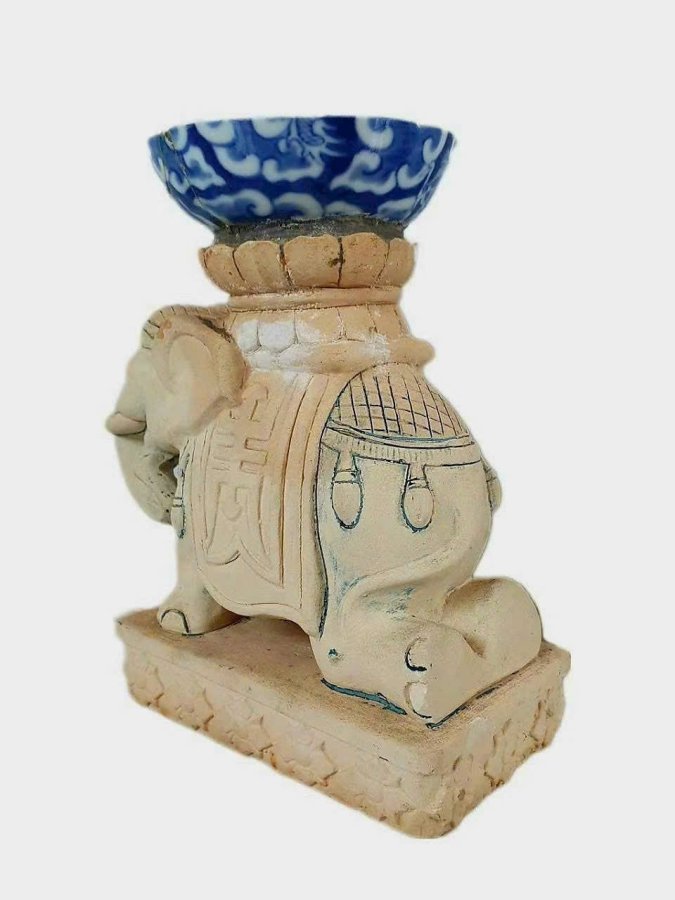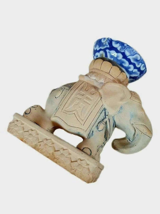 Voi quỳ vòi độc lạ,gốm mộc,mộc lò"Tân Mỹ" chuẩn xưa,vuốt tay đặc nặng. Cao 15,5cm*nặng 1,5