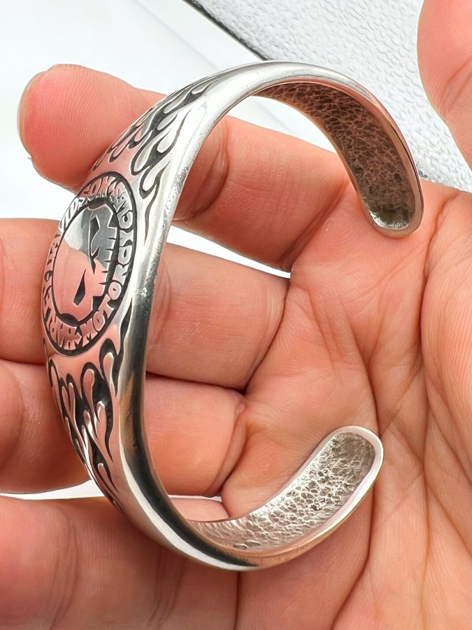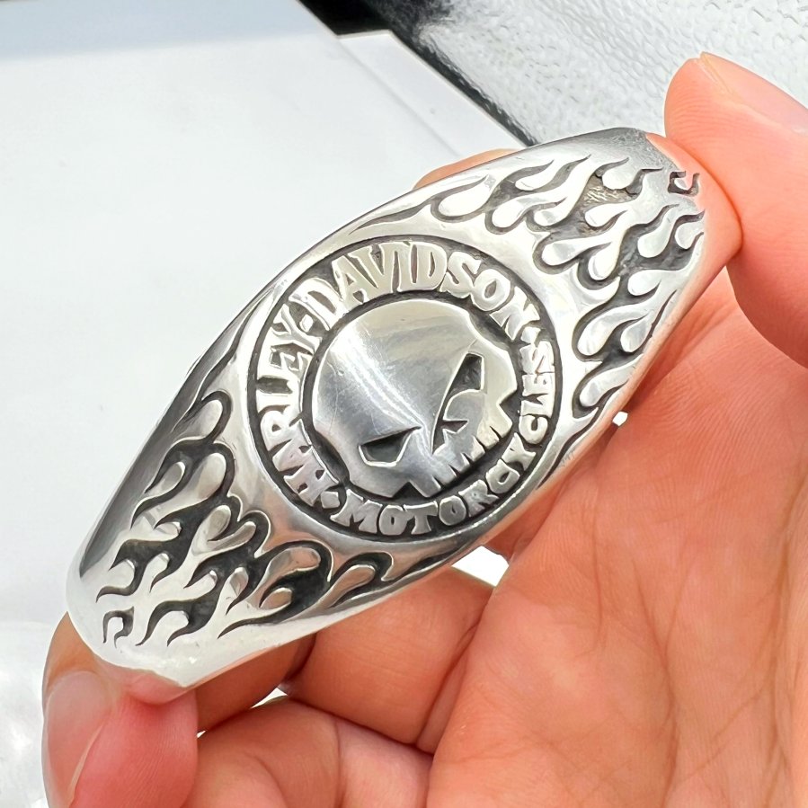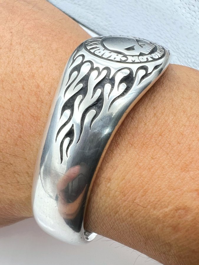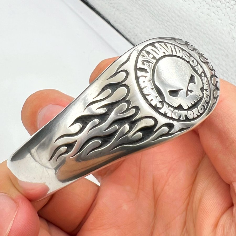 Vòng bạc 925 hiệu Harley Davidson mới tinh phôm bự hoa văn sắc nét rất đẹp, free size 65mm (tăng giảm đc) - ngang 25mm, nặng 66.16gram (17.64 chỉ), giao thông 8tr3❤️ Thiên 0923.12.6789