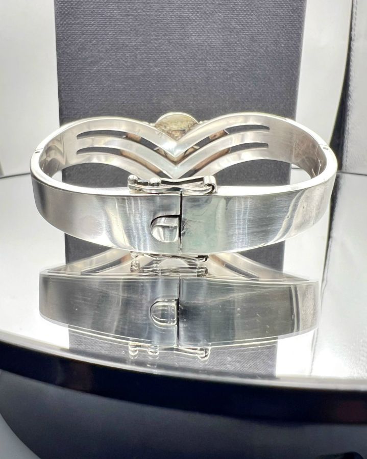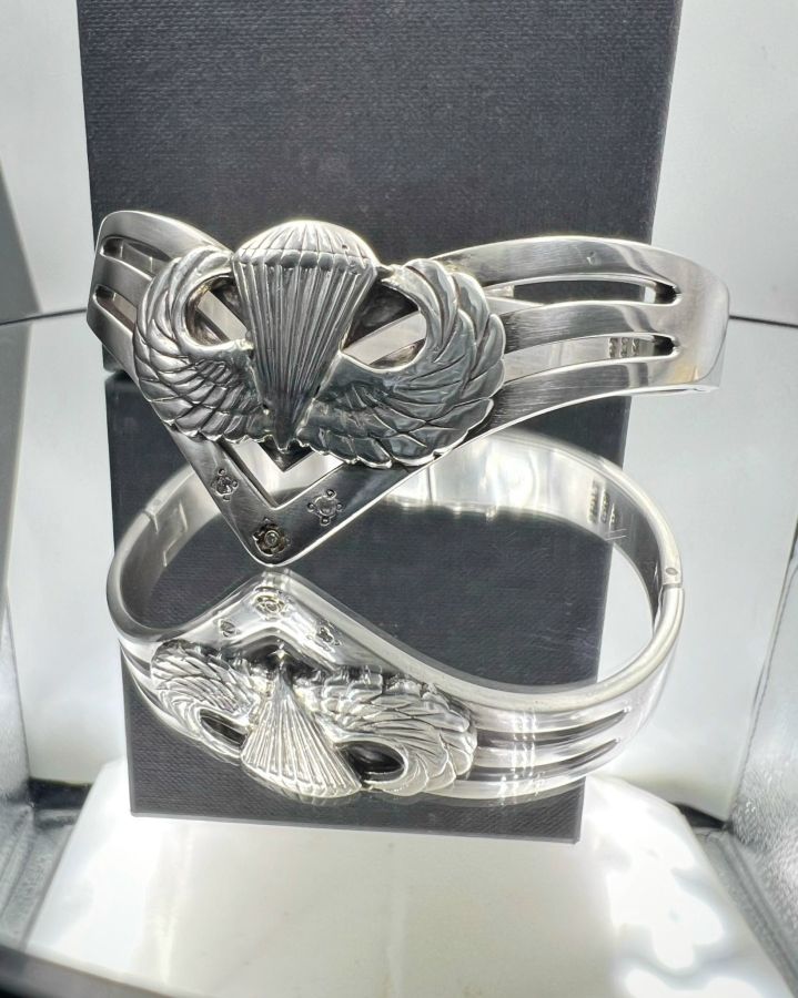 Vòng bạc Lính nhảy dù bạc 950 mexico hoa văn sắc nét đính 3v soàn thiên nhiên rất đẹp, khóa gài chắc chắn, phôm bự, size 50x63mm - ngang 30mm, nặng 60.75gram (16.2 chỉ)