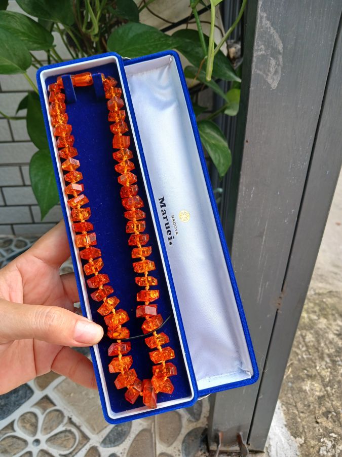 🌈🌈🌈 Hổ phách mới trên 99%, tặng hộp nhung mới đẹp như hình, viên vuông cắt giác lấp lánh mọi góc cạnh, dài dây : 45,5cm. Thích hợp làm quà tặng.