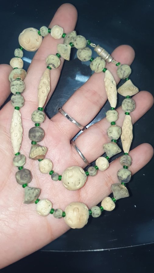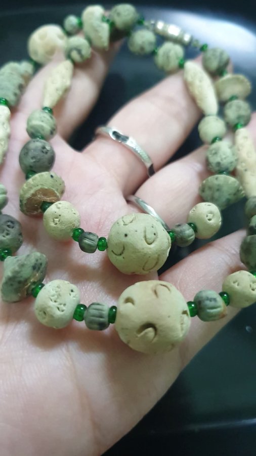 Mẫu này em xỏ lại phối với các hạt cườm xanh của Nhật tạo độ nhấn cho sản phẩm. Dù không biết là có niên đại lâu năm hay không thì cũng rất đáng để sưu tầm như 1 món hàng độc lạ 🥰