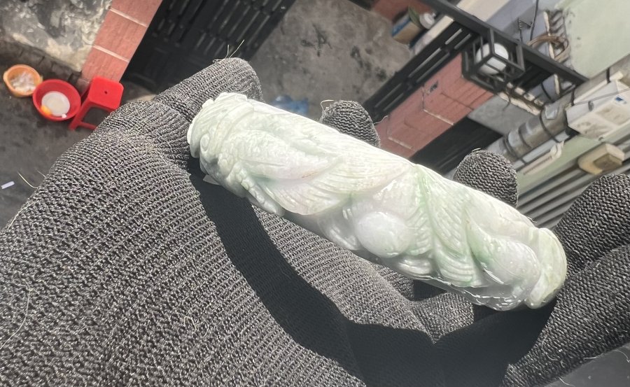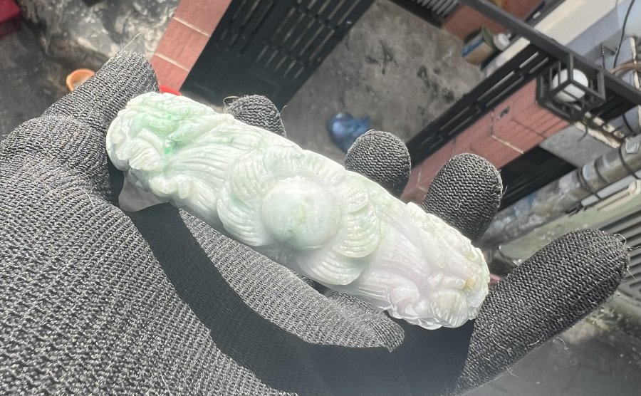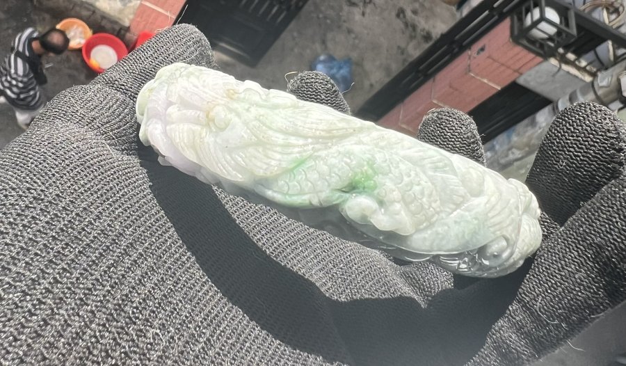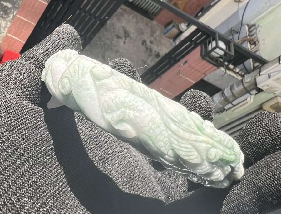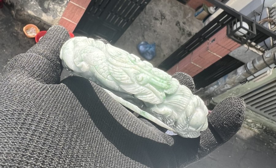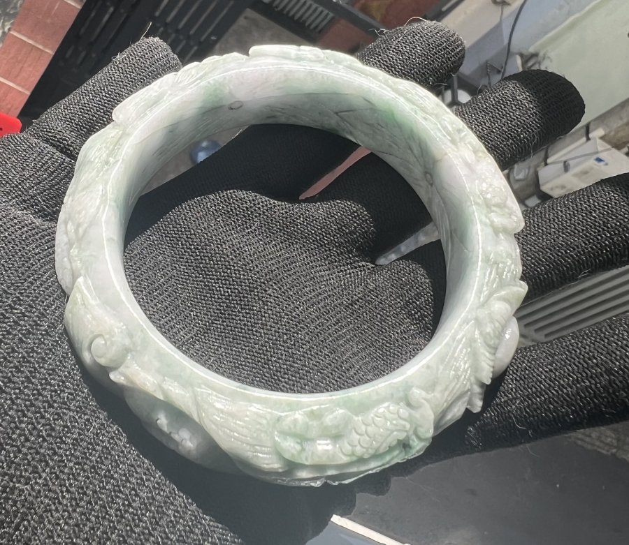 Vòng ngọc Cẩm thạch loại A Điêu khắc song Long chầu nhựt Ni 68.8 mm Thân 20.4 mm Dày 14.5