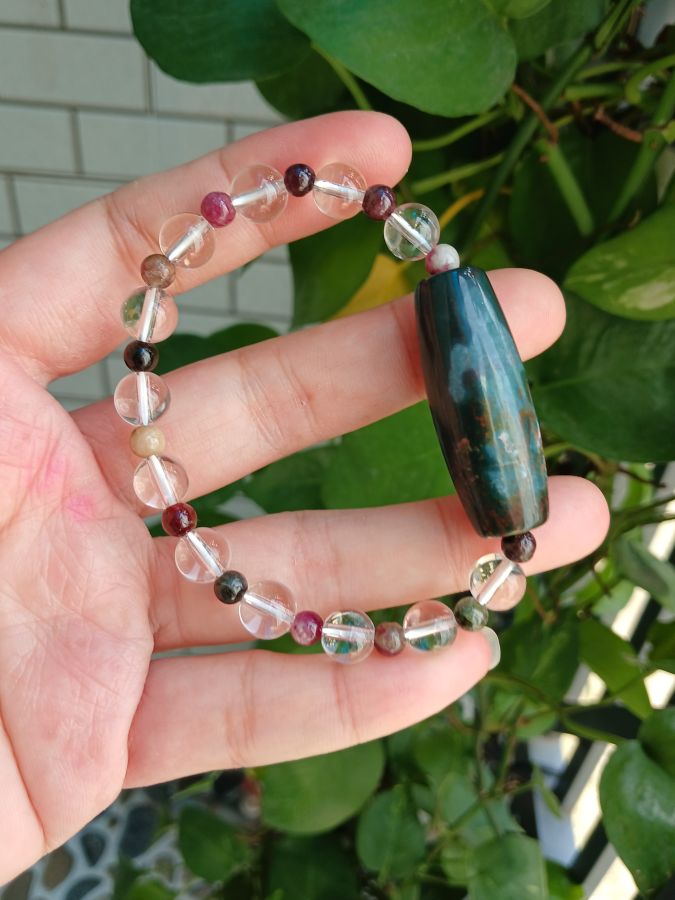 🌈 🌈 🌈 Đá thạch anh trắng trong veo + tourmaline, đá thạch anh size : 7mm.