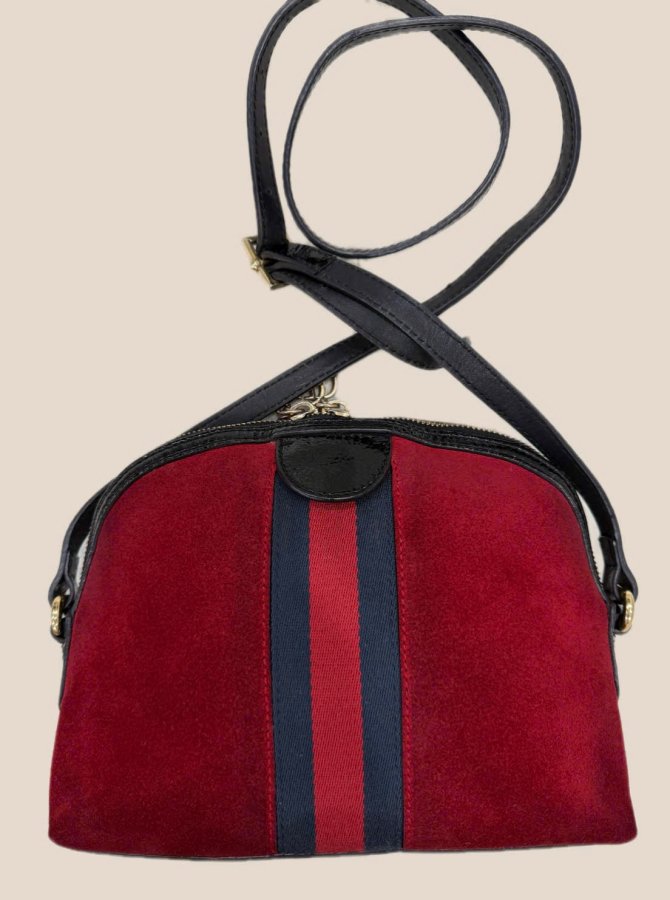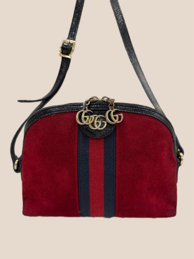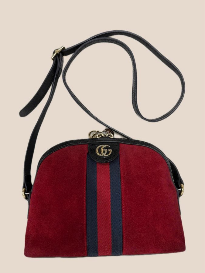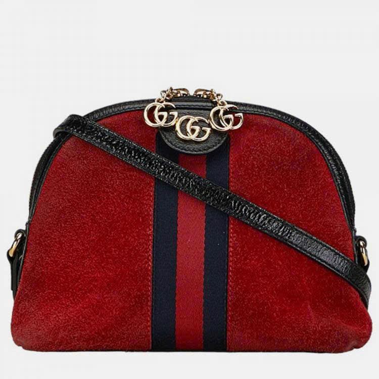 Gucci Red Leather, Suede Suede Small Ophidia Dome Shoulder Bag.( gucci bag 499821 )