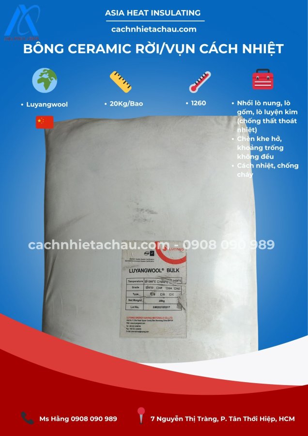 Sợi gốm vụn có màu trắng dạng gòn phồng mềm sạch sẽ, có đặc điểm ổn định nhiệt, là chất liệu hoàn hảo cho niêm phong khe hở, chèn kín mặt bít và cách điện trong môi trường có nhiệt độ cao.