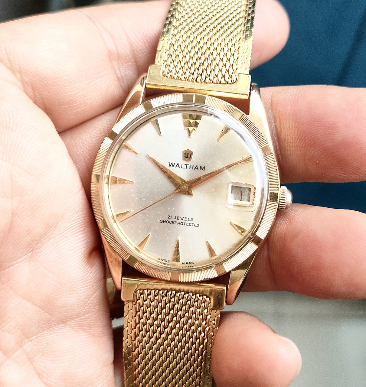 Watham Swiss 21 Jewels, lên giây cót, chuẩn thụy Sỹ, biểu tượng đại bàng tung cánh phong cách, niềng khía bạc cắc đẹp độc, mặt zin, kính lúp zin, máy vàng đỏ chất lượng, dây lưới lắcke vàng mới nguyên chưa sử dụng, đồng hồ đang chạy ổn định và chính xác. Size 34 không đo núm