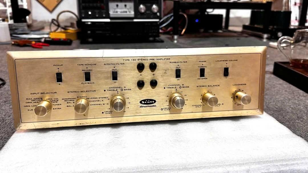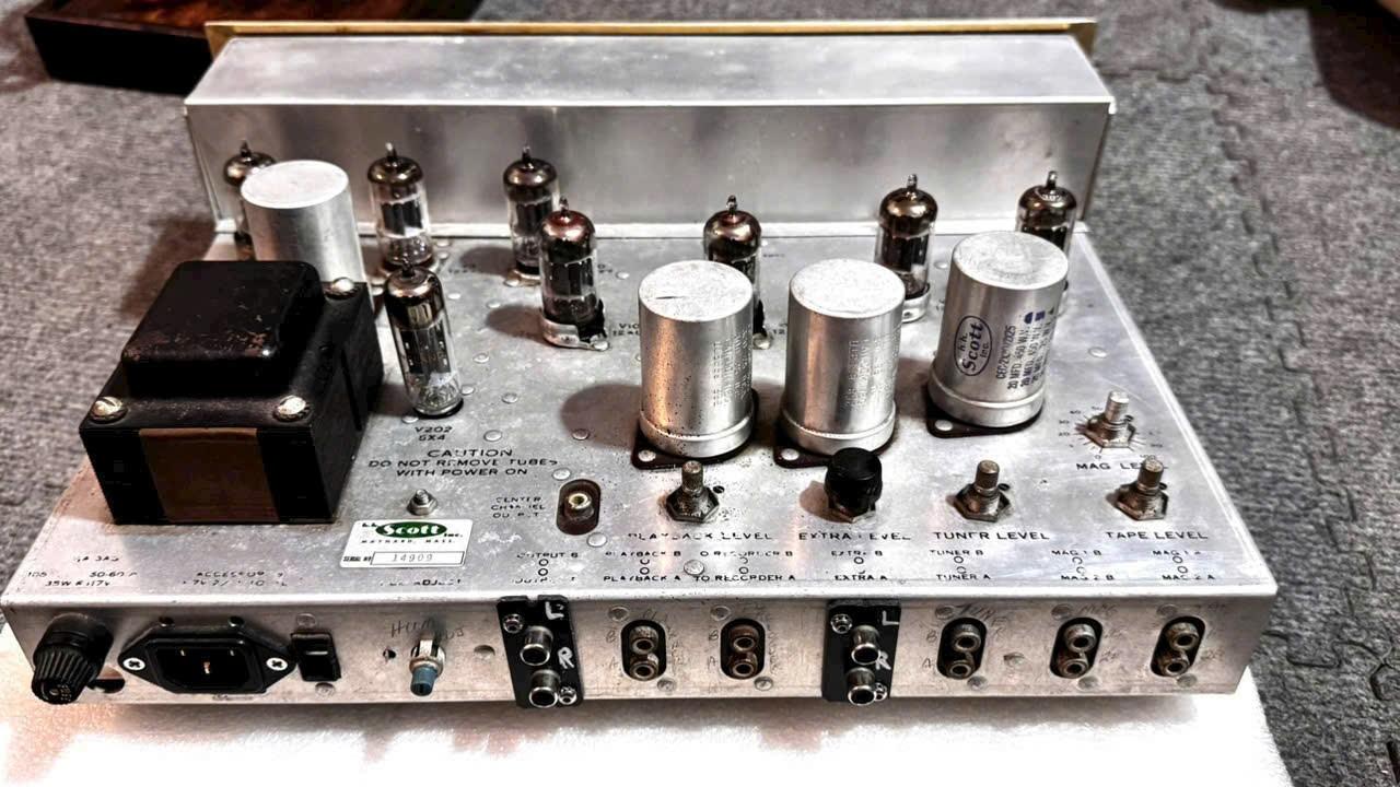 Xác pre đèn Scott 130 /máy sử dụng tube 12A x7 = 5 12au7 = 2 //6 x 4 = 1 hoạt động tốt bán