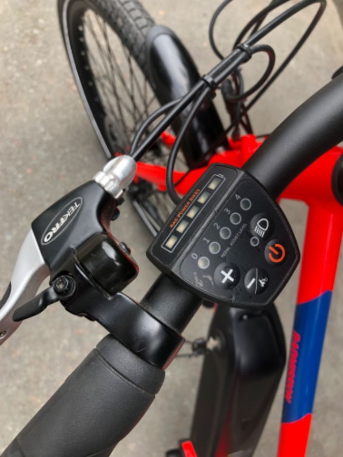 xe đạp thắng đĩa . có trợ điện xe chạy tốc độ như xe máy . xe có 1 pin trên xe và 1 pin xe cua nhập mỹ nguyên chiếc xe hiệu RAD power Bikes ,RADMISSION 1 group TEKTRO , xe cầm pin 12 tiếng sơn zin đẹp 95%