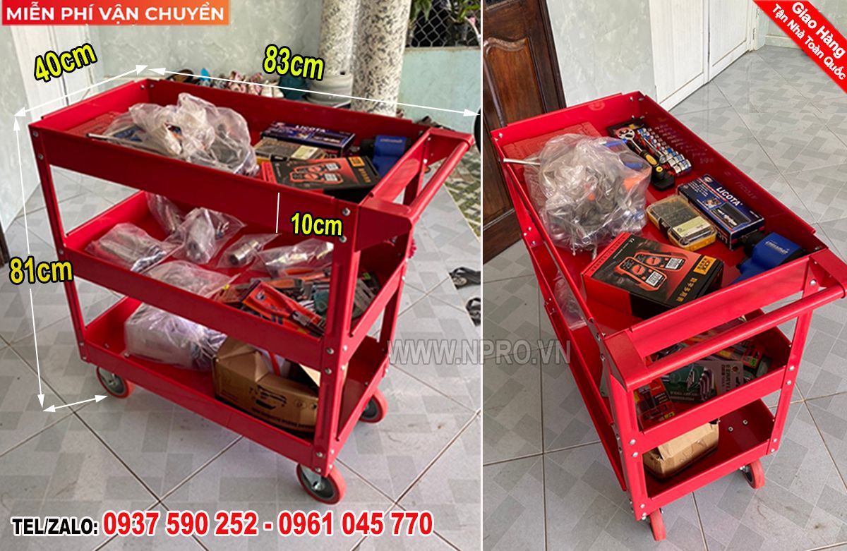 Xe đẩy dụng cụ 3 ngăn hay còn gọi với những cái tên như: kệ đựng đồ nghề, xe đẩy đồ nghề có bánh xe tiện di chuyển. Sản phẩm chuyên dùng đựng dụng cụ cơ khí trong các xưởng cơ khí, xí nghiệp hay đựng đồ nghề trong tiệm sửa xe máy, gara ô tô, head và giả head Honda, Yammaha, Piaggio hoặc đựng thiết bị trong các hộ gia đình.