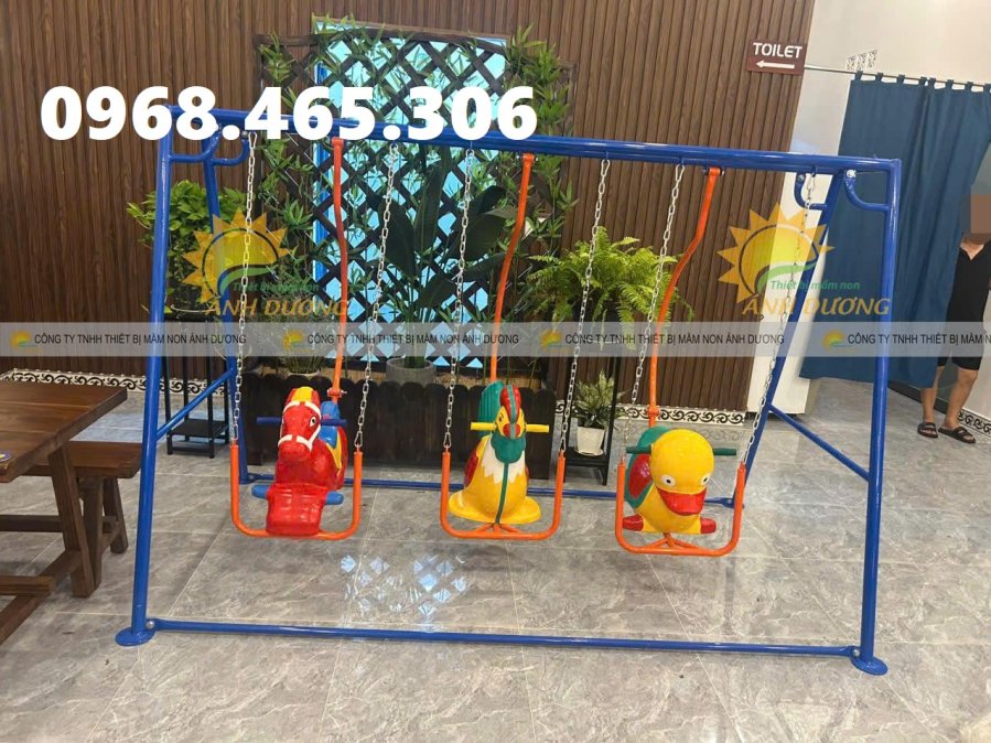 Xích đu trẻ em phù hợp đặt trong trường mầm non, khu vui chơi, công viên, nhà thiếu nhi...; cho các bé vui chơi với nhau.