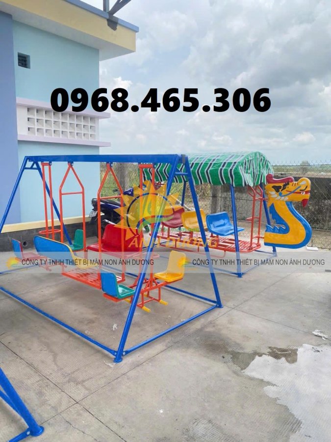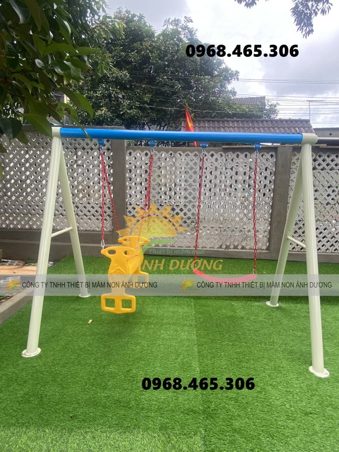 là mẫu xích đu sắt mầm non giá rẻ được thiết kế và sản xuất tại Việt Nam, đây là dòng xích đu trẻ em bán chạy nhờ thiết kế đẹp mắt, khung sắt chắc chắn và giá thành rẻ so với các sản phẩm đồ chơi ngoài trời khác.