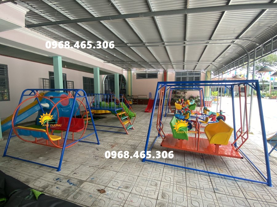Xích đu đa năng được lắp đặt phổ biến ở trường mầm non, khu vui chơi công cộng, khu vui chơi ngoài trời, sân chơi quán ăn gia đình, sân chơi cho bé ở quán cà phê....