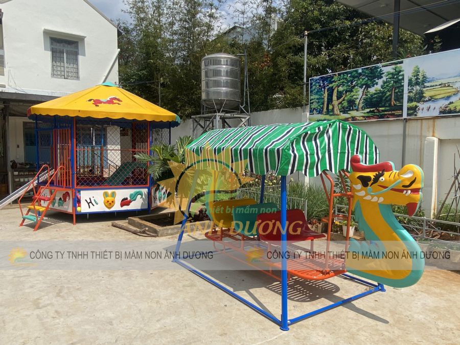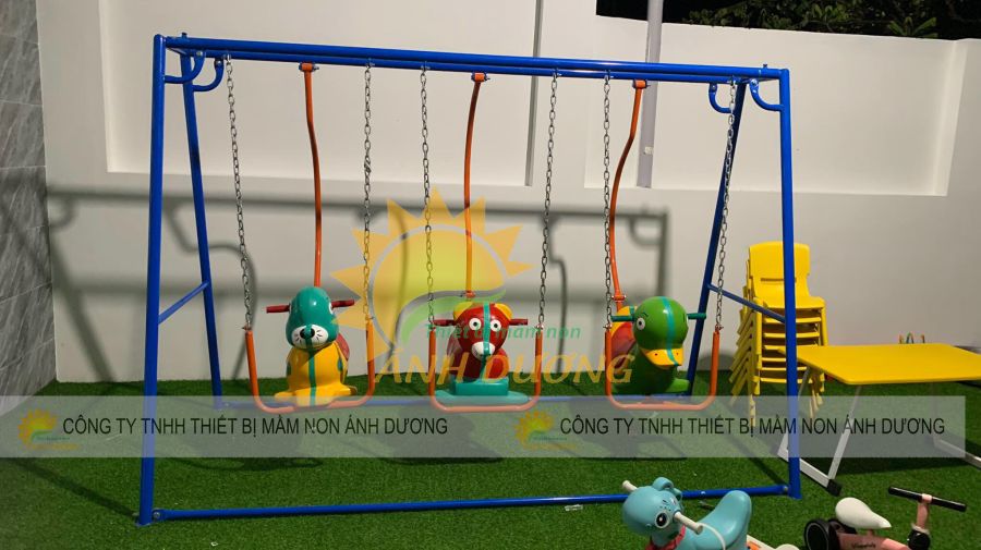 - Xích đu mầm non có cấu tạo đơn giản, dễ lắp đặt và di chuyển nhưng lại đem lại hiệu quả vui chơi lớn cho các bé.