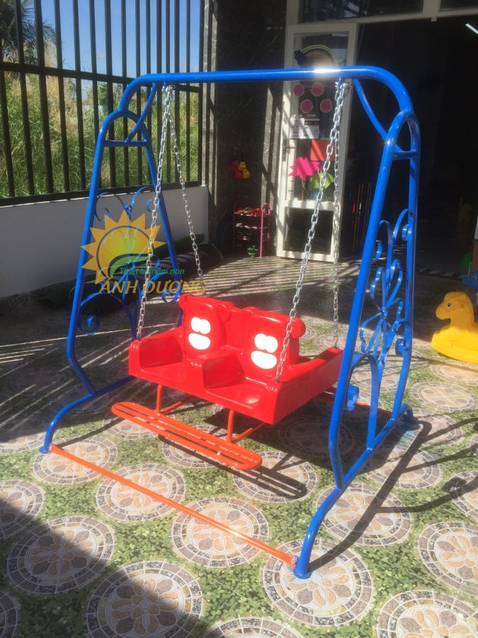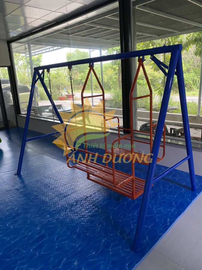 - Xích đu cho bé có khung sắt sơn tĩnh điện, ghế xích đu làm từ nhựa cao cấp, màu sơn đẹp mắt và lâu phai, không độc hại, an toàn cho trẻ em. Nhiều kích thước khác nhau, phù hợp với không gian vui chơi của các bé.