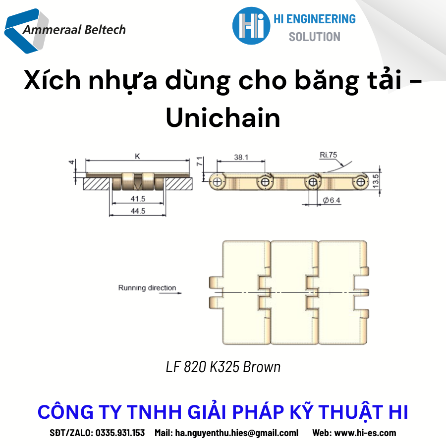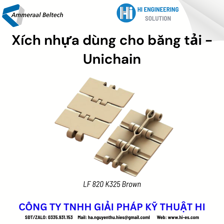 Xích nhựa Unichain 820 được thiết kế chuyên dụng cho các dây chuyền sản xuất thực phẩm và đồ uống như: