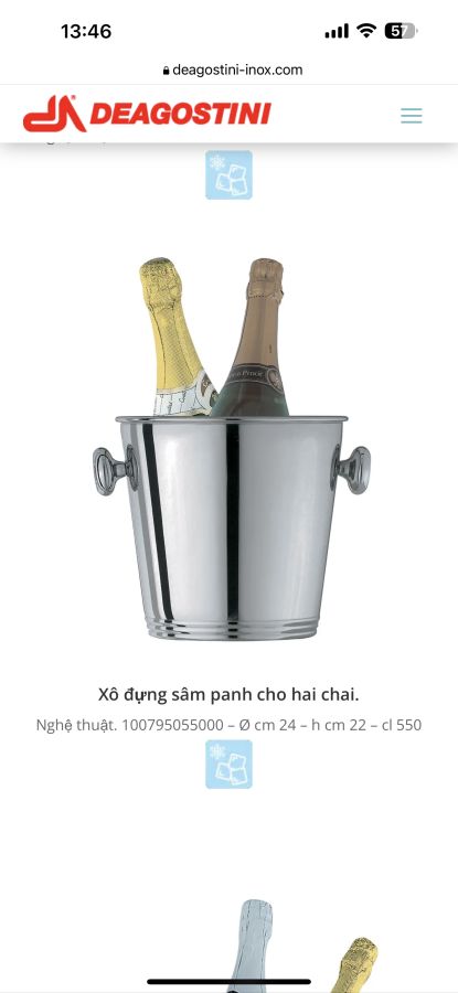 Xô đựng 2 chai xâm panh chính hãng deagostini made in italy cực vip hàng chưng bày chưa sử dụng . Inox dày và nặng