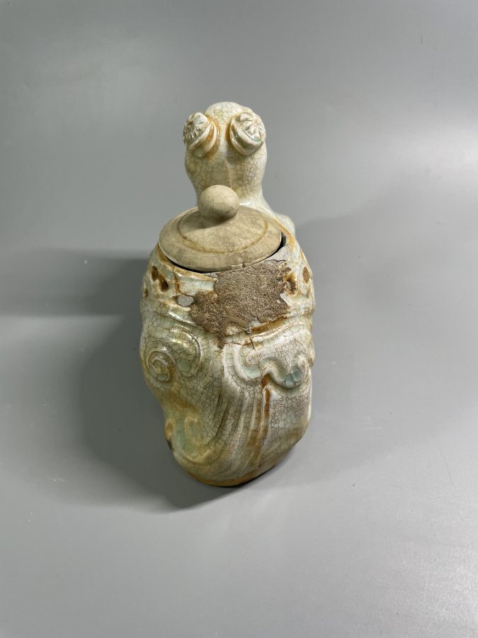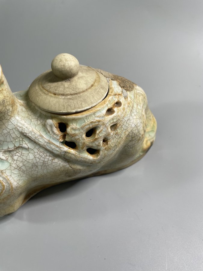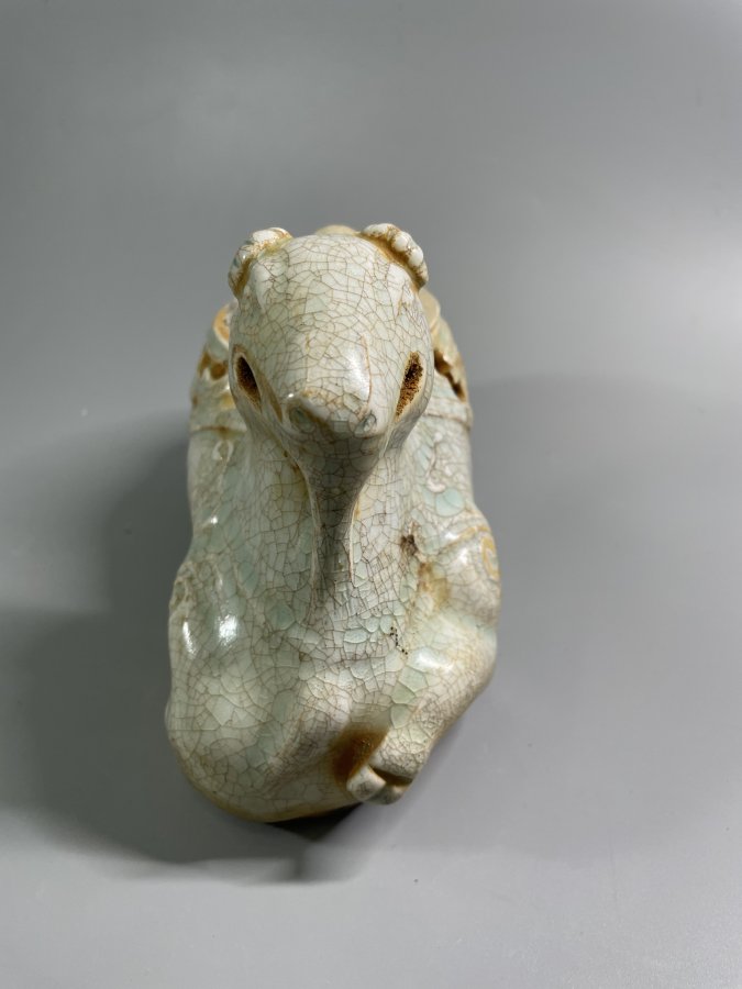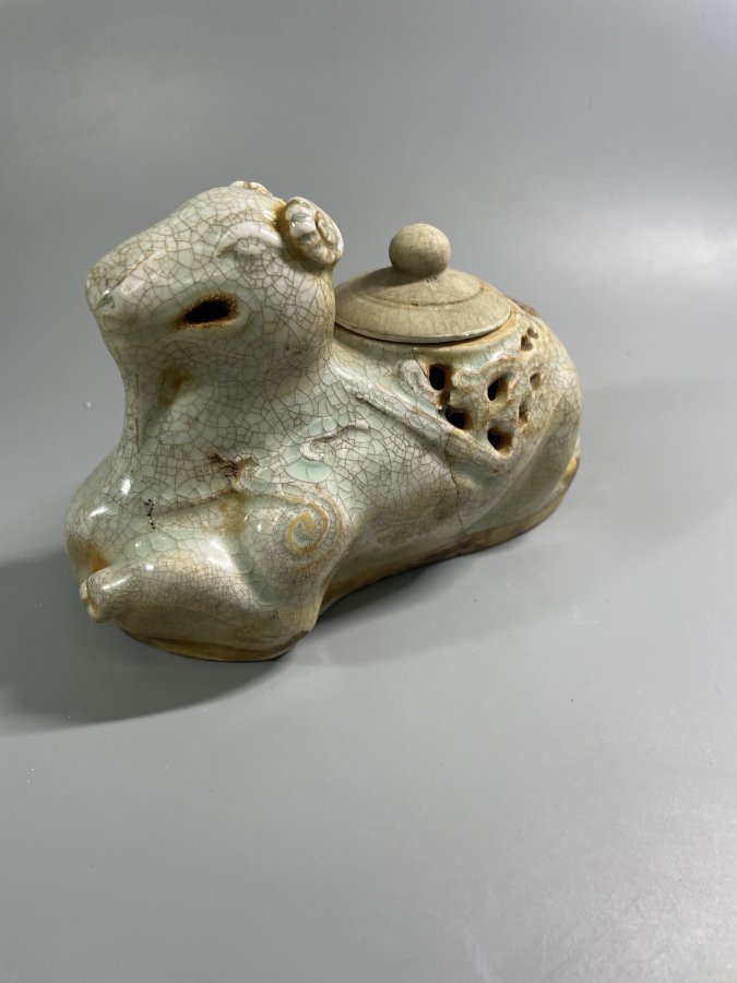 Xông trấm sứ men Bạch định rạn du lộ, hình tượng con dê.