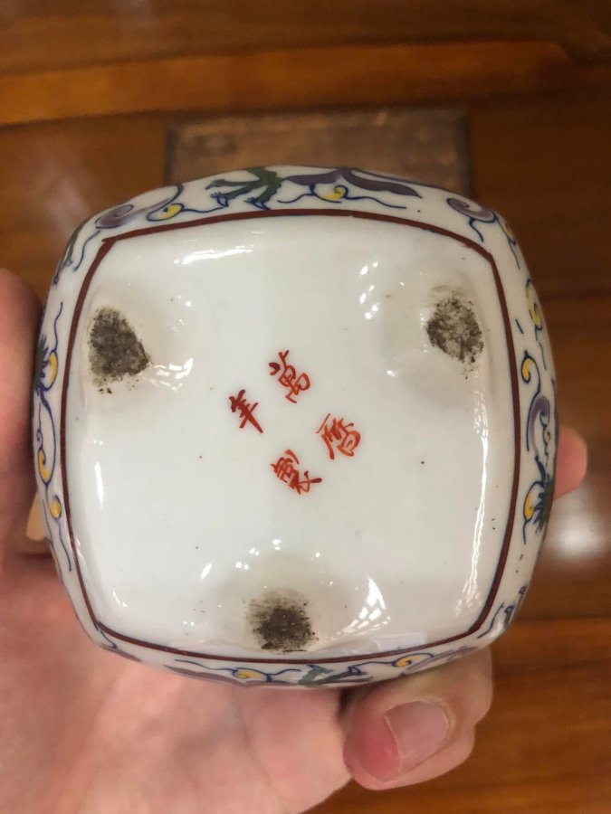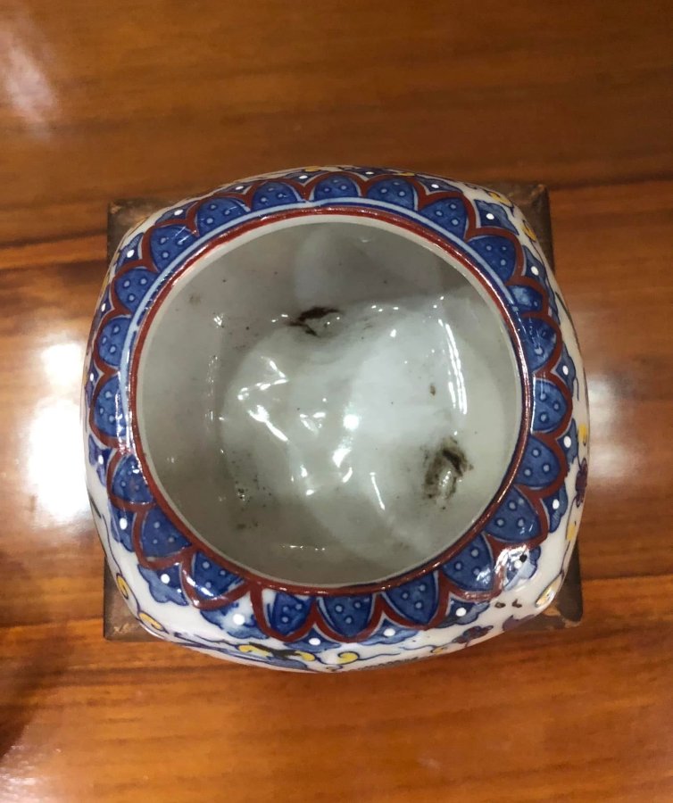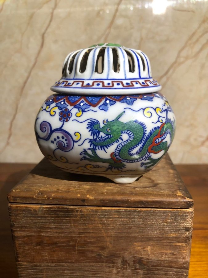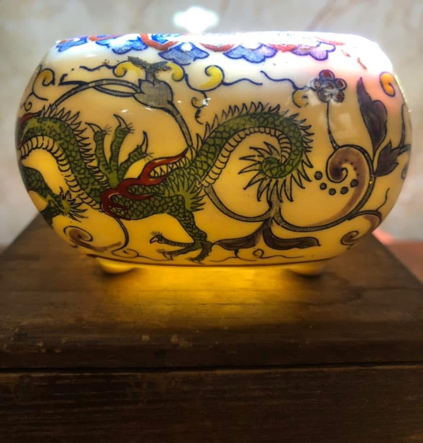 Một Chiếc xông trầm xưa vẽ rồng full hộp gỗ có triện rất đẹp Kích thước 8x8 cm