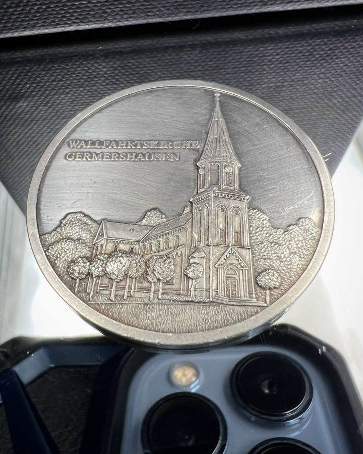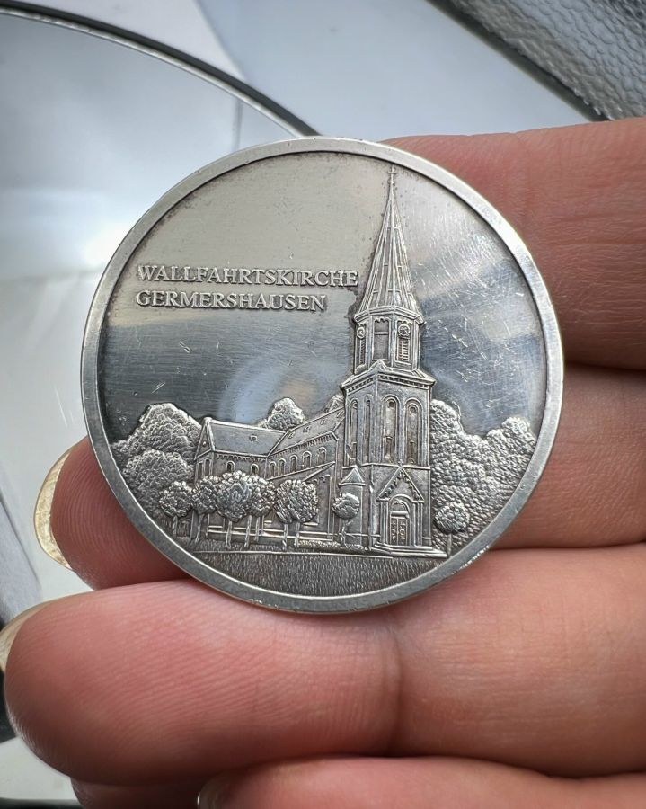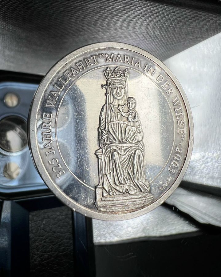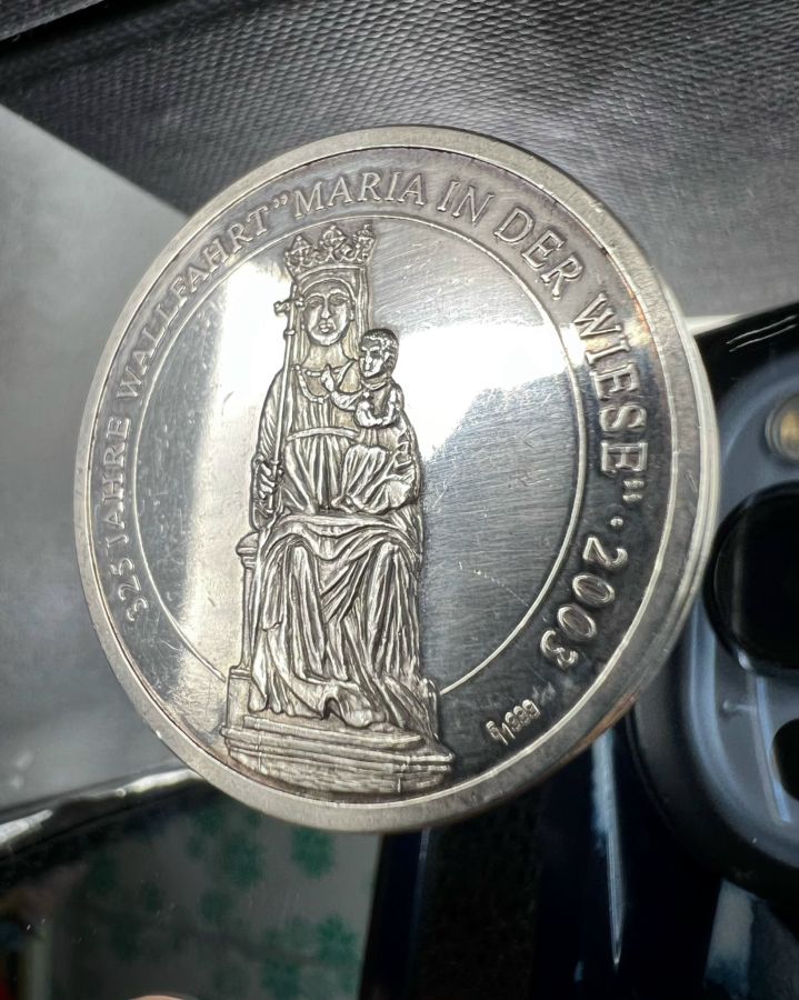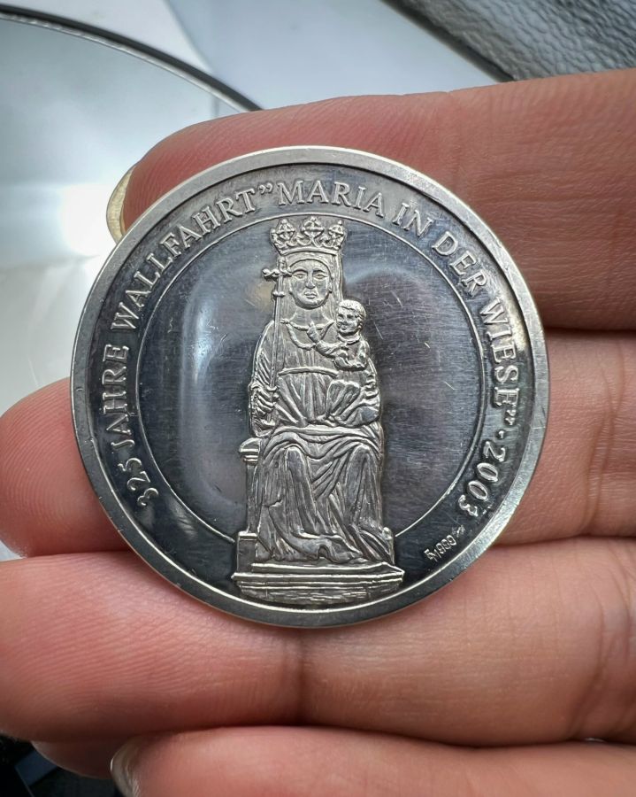 Xu bạc công giáo năm 2003 hoa văn 2 mặt sắc nét ít gặp rất đẹp, size 35.5mm, nặng 14.75gram (3.93 chỉ)