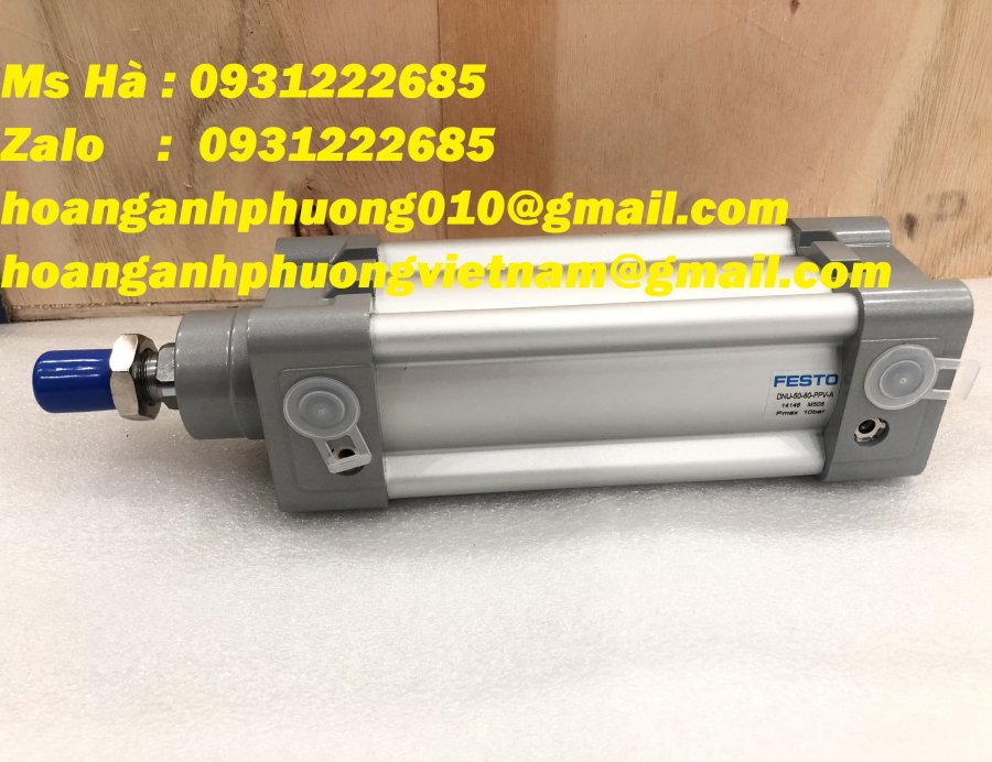 Xy lanh khí tác động kép (double-acting ISO cylinder), thuộc dòng DNU của Festo