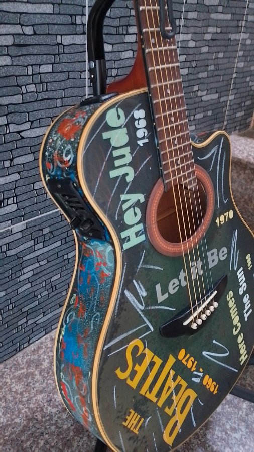 Yamaha acoustic limited, nguyên zin cực đẹp,EQ zin, sx tại Nhật 1987 bản kỷ niệm ban nhạc huyền thoại The Beatles 1960-1970, còn thùng zin Yamaha theo đàn.