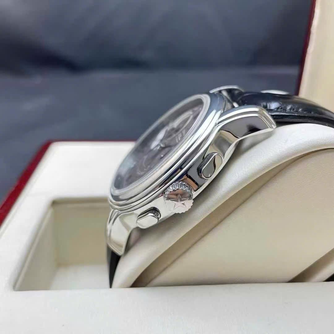 Sử dụng bộ máy AutomaticChất liệu vỏ được làm từ Thép Kích thước mặt là 43mmChiếc đồng hồ được trang bị kính Sapphire và dây Da