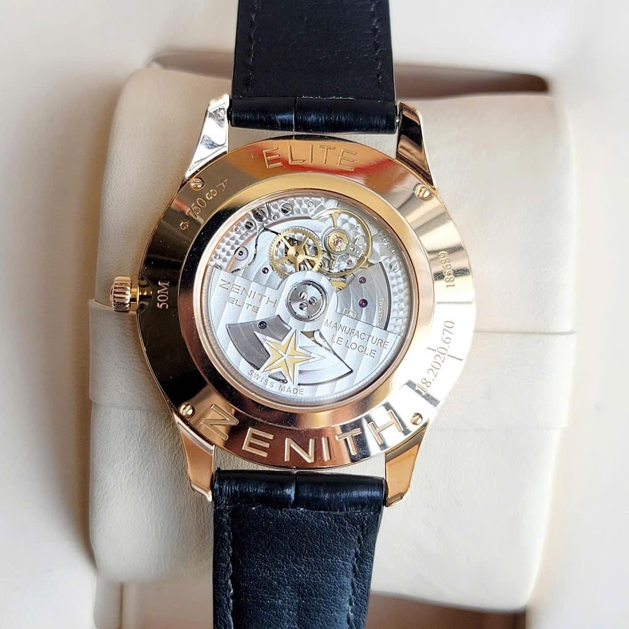 Model tuyệt đẹp, siêu mỏng của zenith, với mặt dial độc đáo & bộ máy inhouse trứ danh Zenith caliber 670 với 27 chân kính, 50h trữ cót, 28800vph