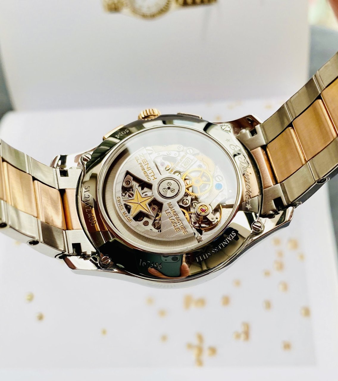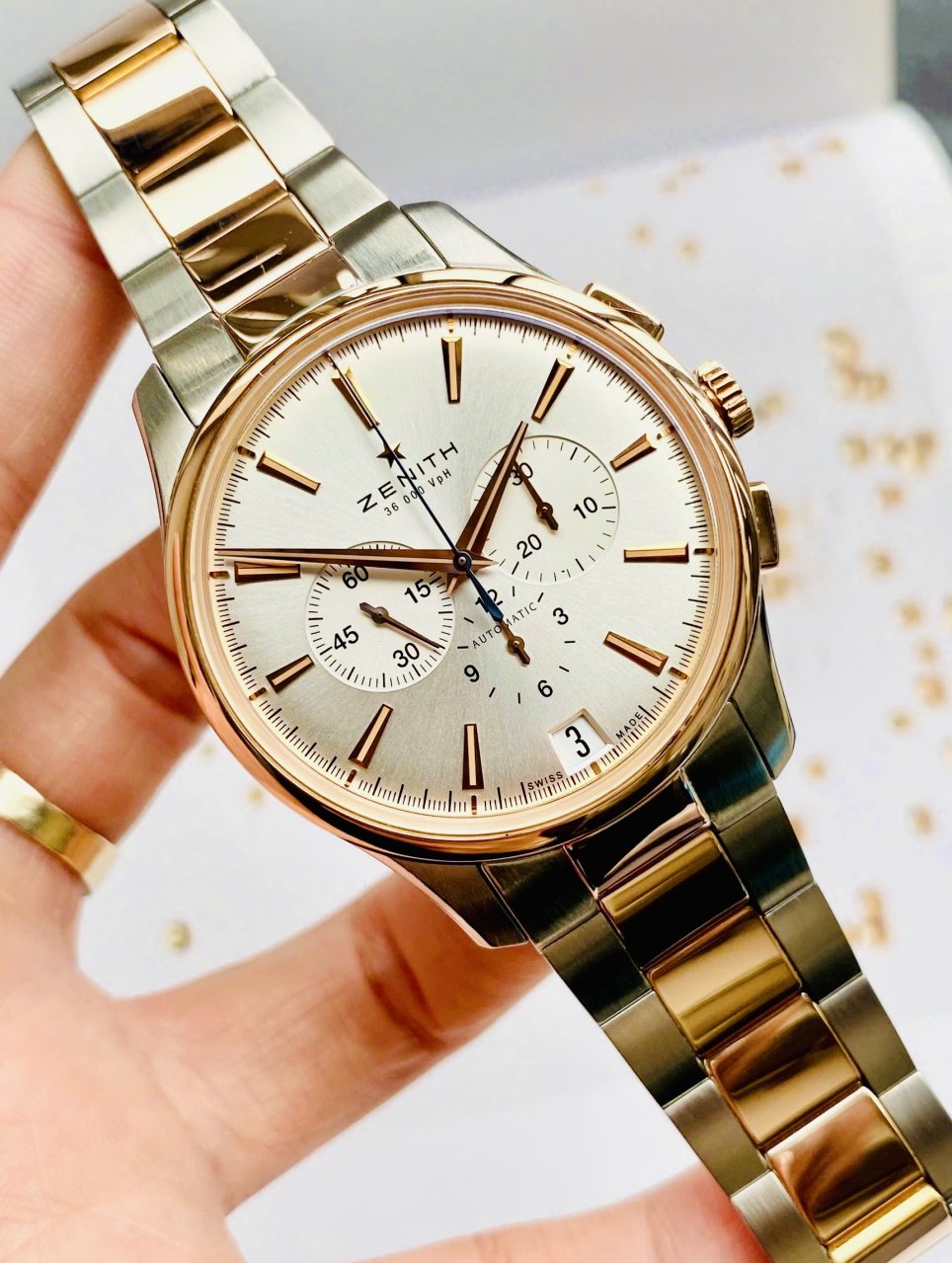 Zenith El Primero Captain Chronograph Ref: 51.2112.400/01.M2110, Demi Vàng hồng đúc 18k, Size 42mm, Like new fullbox, Giao lưu 125 triệu (Retail: 325 triệu) ah