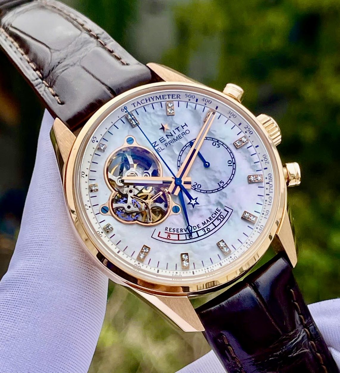 Zenith El Primero Chronograph Diamonds MOP trắng, Vàng hồng đúc 18k, Size 42mm, Like new fullbox, Giao lưu 265 triệu ah