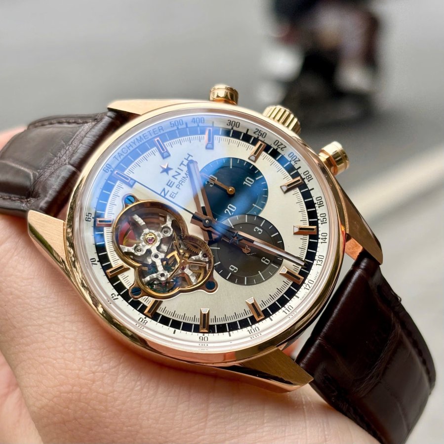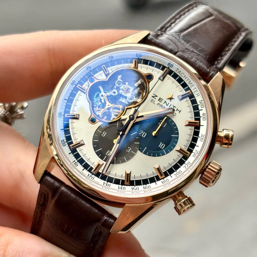 Zenith El Primero Chronograph Tri-Color Panda, Ref: 18.2040.4061/69.C494, Vàng hồng đúc 18k nguyên khối, Size 42mm, Like new fullbox, Giao lưu 286 triệu (Retail:~600 triệu) ah