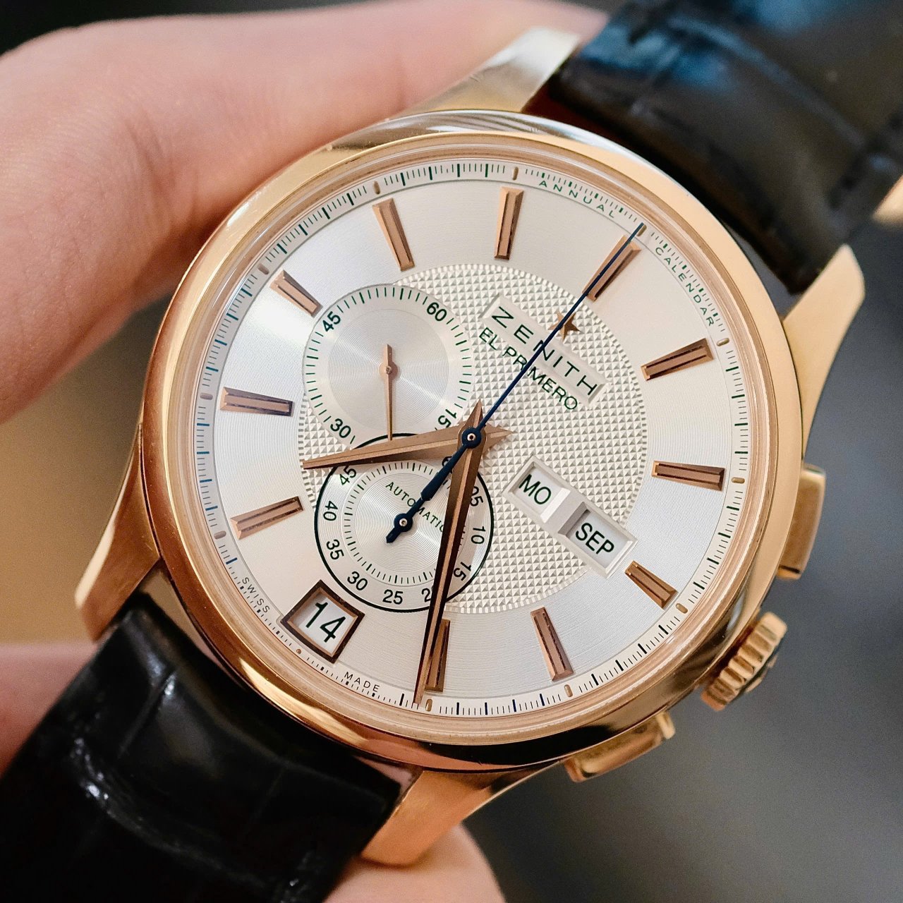 Zenith EL Promero Winsor Nanual Calender Chronograph, Ref 18.2070.4054/02.C711, Vàng hồng đúc 18k nguyên khối, Size 42mm, Like new fullbox, Giao lưu 238 triệu (Retail: ~ 500 triệu) ah